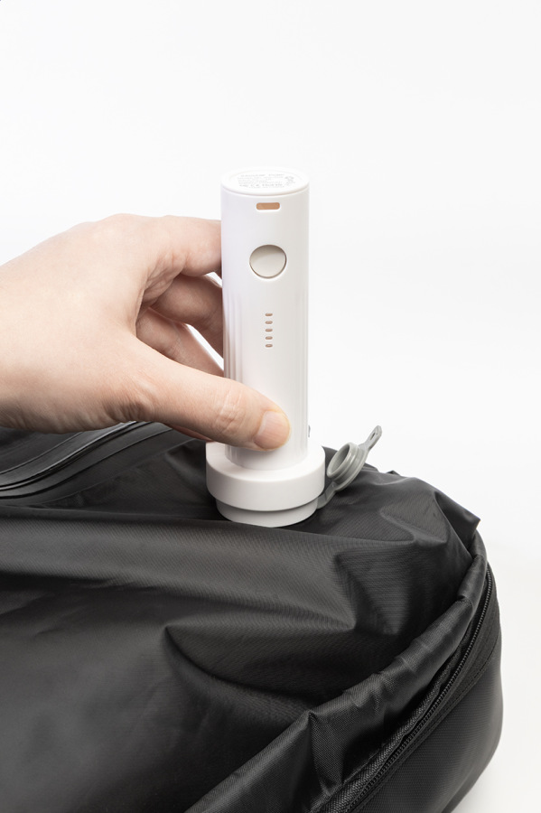 Vodoodolný, rozťahovací kompresný batoh s priehradkami na zips, vstavanou vákuovou kompresnou priehradkou, polstrovanou priehradkou na notebook (15") a predným vreckom na zips. S bočnými prackami, popruhom na kolieskach, polstrovaným chrbtom a ramennými popruhmi. Polyester 600D potiahnutý PU. Vrátane vákuovej pumpy s USB akumulátorom (1500 mAh).