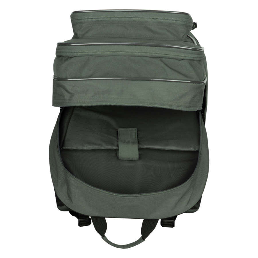 • Tri samostatne uzatvárateľné komory s vnútorným organizérom a kapsou na 15palcový notebook alebo tablet. Tento vnútorný organizér umožňuje rovnomerné rozloženie hmotnosti.