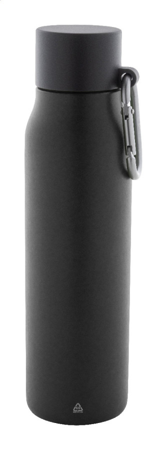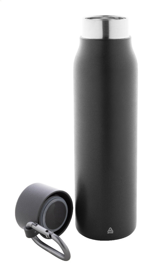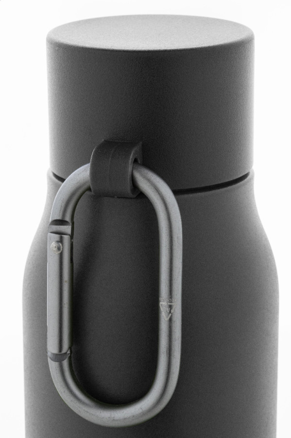 Dvojstenná vákuová fľaša z recyklovanej nerezovej ocele s viečkom z PP a karabínou z recyklovaného hliníka. 500 ml.
