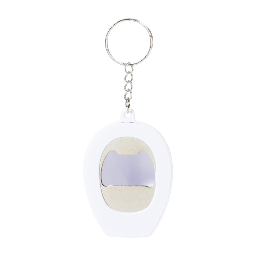 Prívesok na kľúče v tvare bezpečnostnej prilby z recyklovaného ABS materiálu s otváračom na fľaše.