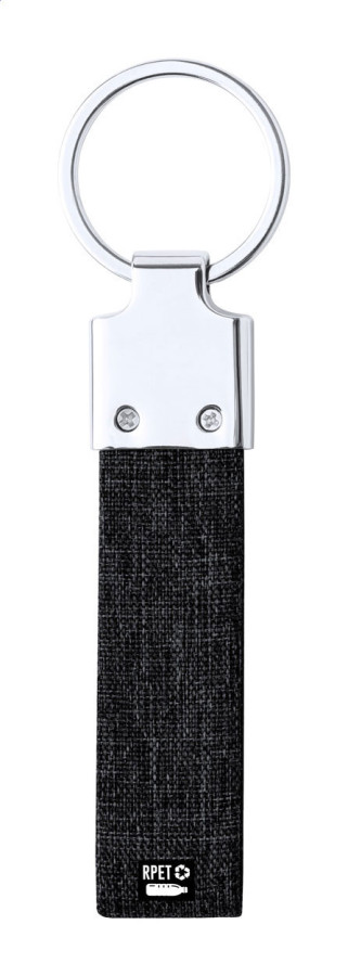 Kovový prívesok na kľúče s RPET polyesterovým pásikom.