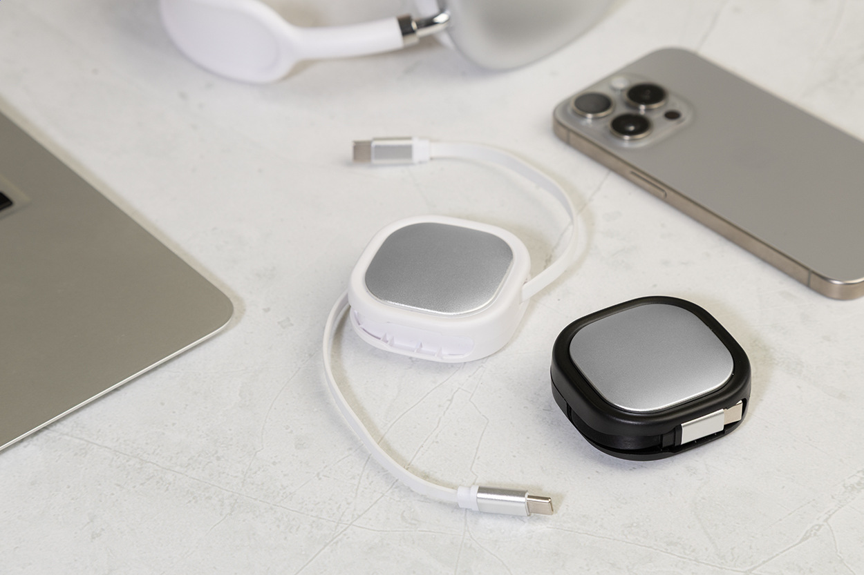 Teleskopický nabíjací kábel USB-C/USB-C z recyklovaného ABS a recyklovaného hliníka. Podporuje rýchle nabíjanie PD 60W.