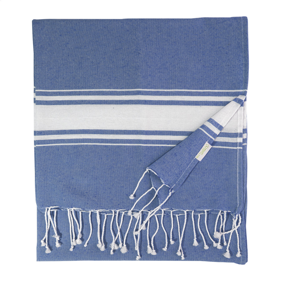 Dvojfarebná plážová osuška pareo zo 70% recyklovanej bavlny a 30% RPET polyesteru, 180 g/m²