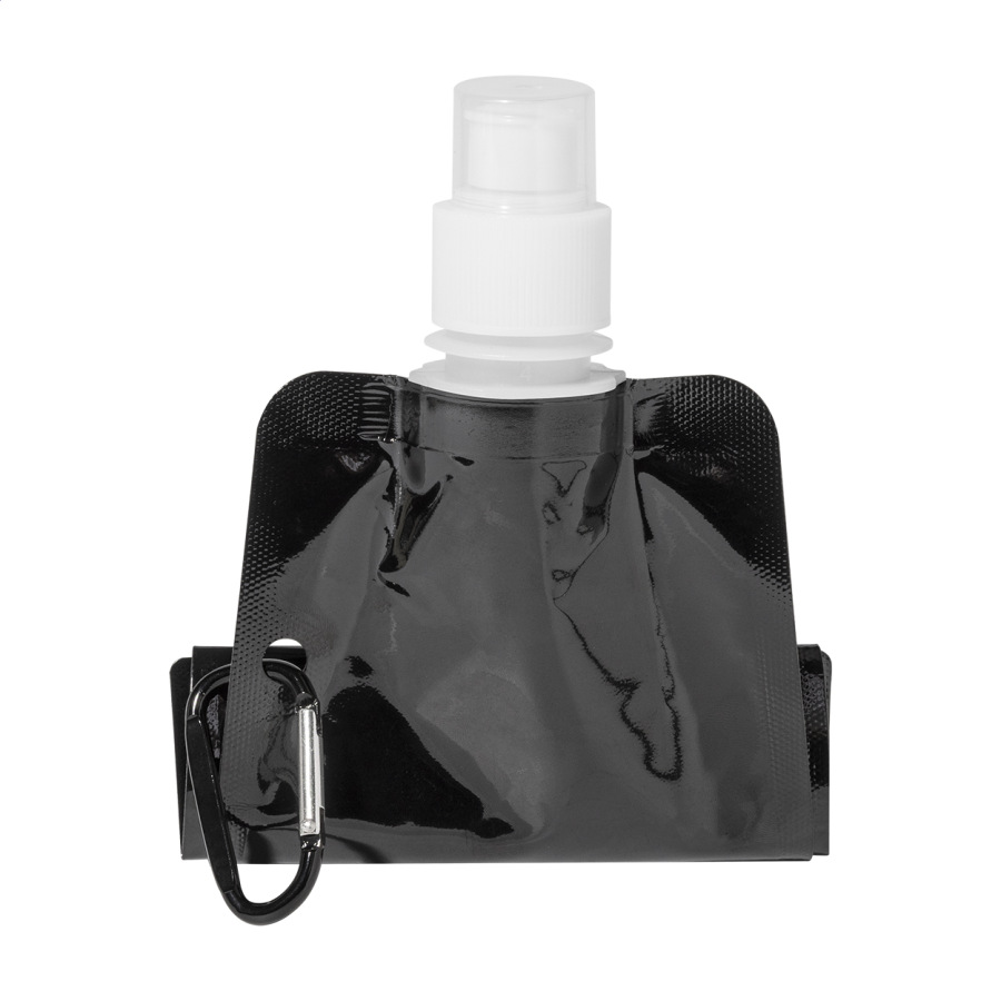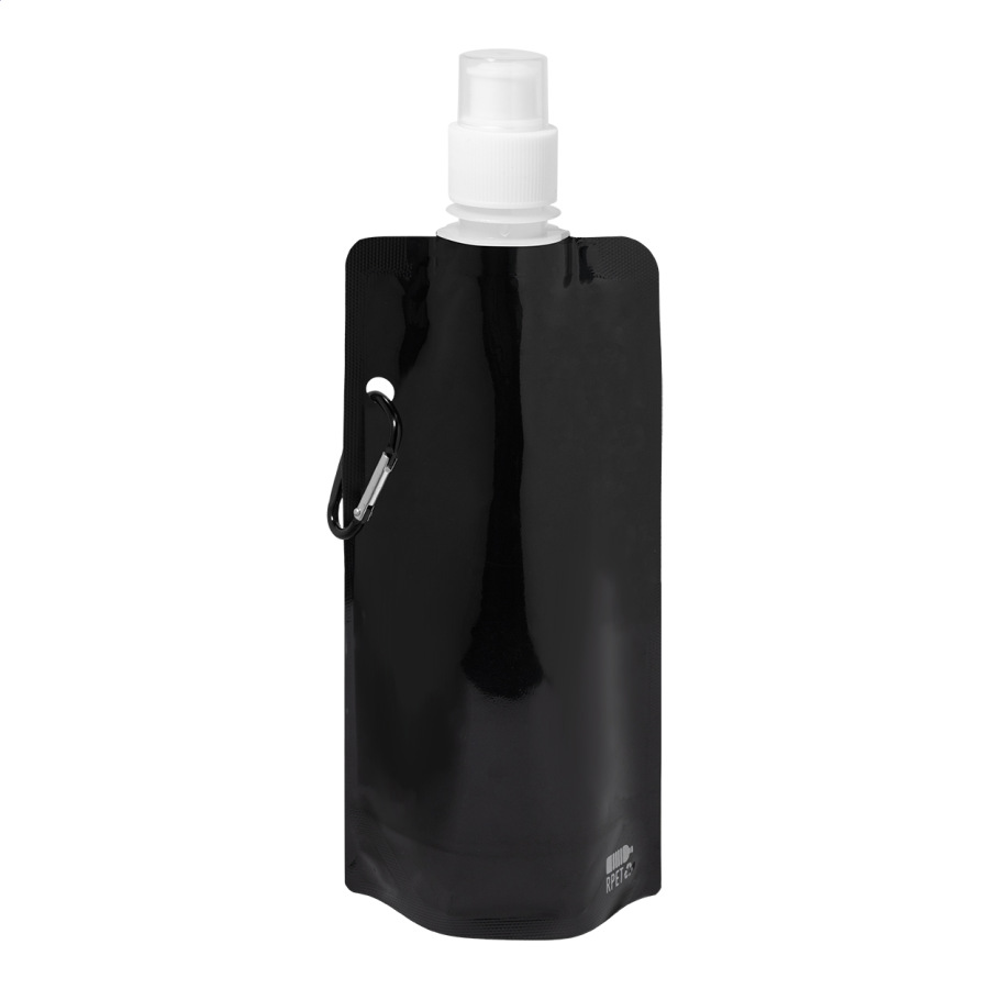 Skladacia športová fľaša z RPET s viečkom na pitie a hliníkovou karabínou, 500 ml. Bez BPA. Nevhodná pre sýtené nápoje.