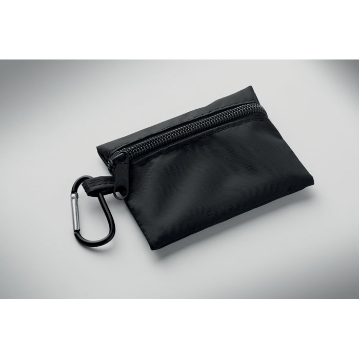 Kompaktní lékárnička v pouzdře RPET s hliníkovou karabinkou. V setu najdete 4 čistící tampony, 3 náplasti, 2 obvazy, 2 gázové tampony, pásku a nůžky. Není určeno k prodeji mimo EU.