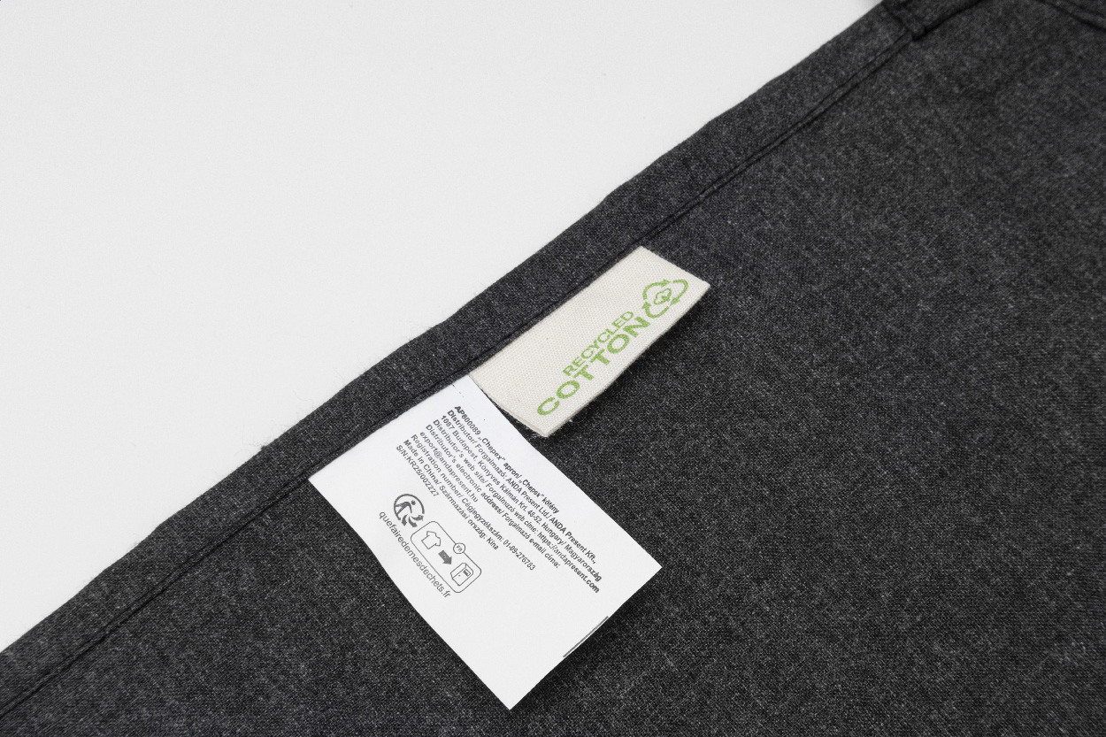 Kuchynská zástera zo 70% recyklovanej bavlny a 30% RPET polyesteru, 180 g/m².