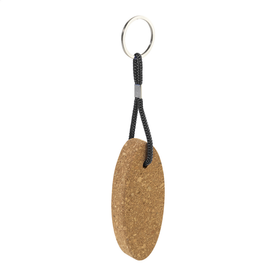 Plávajúci prívesok na kľúče z prírodného korku s polyesterovou šnúrkou a kovovým krúžkom.