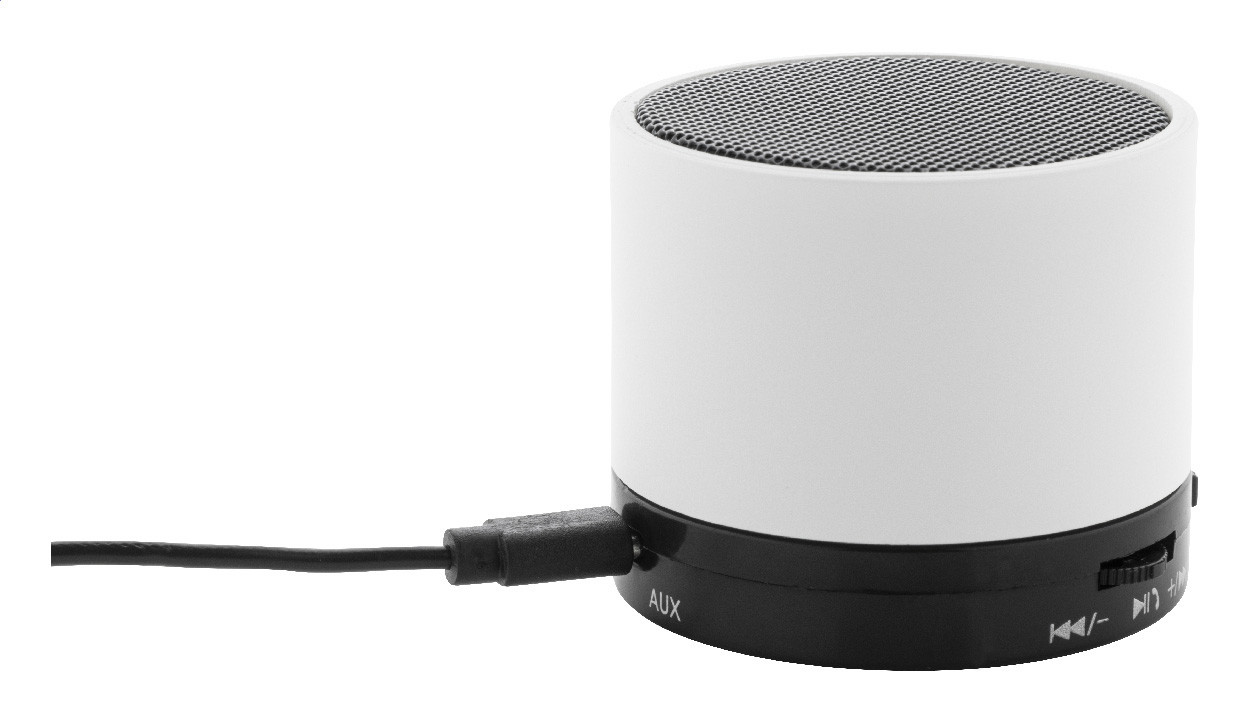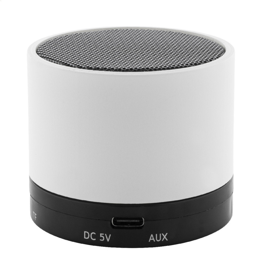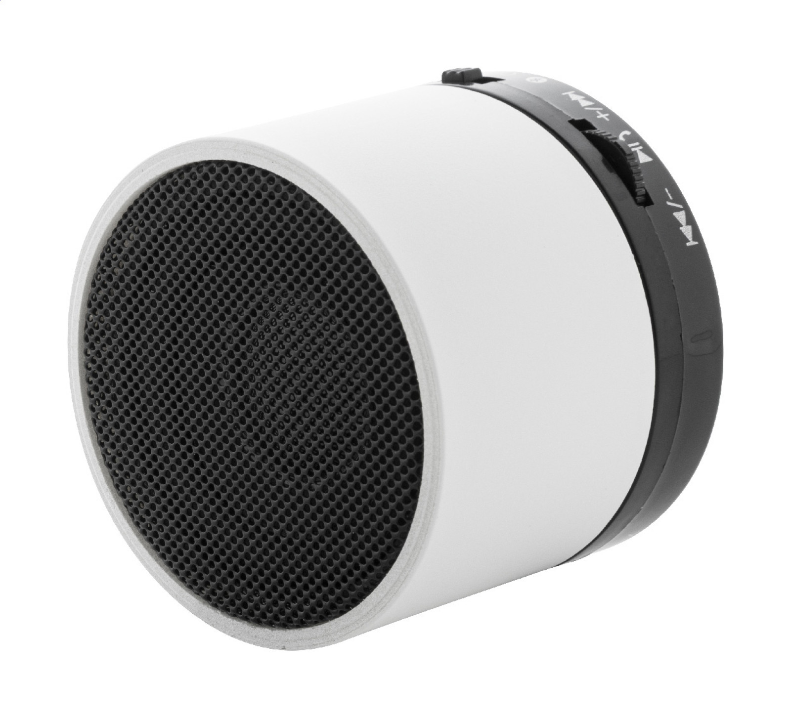 Bezdrôtový reproduktor z recyklovaného ABS v pogumovanom puzdre s kovovou sieťovinou a dobíjacou batériou (300 mAh). S funkciou handsfree hovorov a prehrávanie MP3 z micro SD karty. Vrátane nabíjacieho kábla USB.