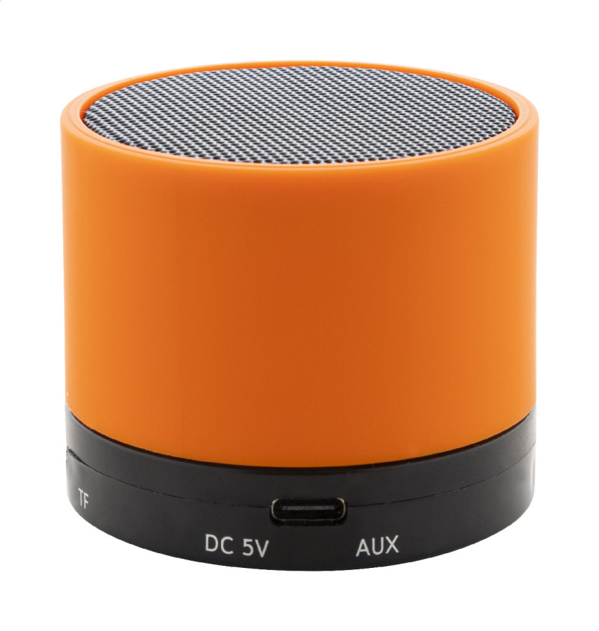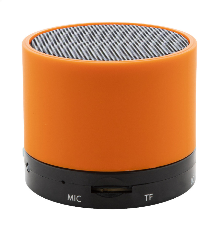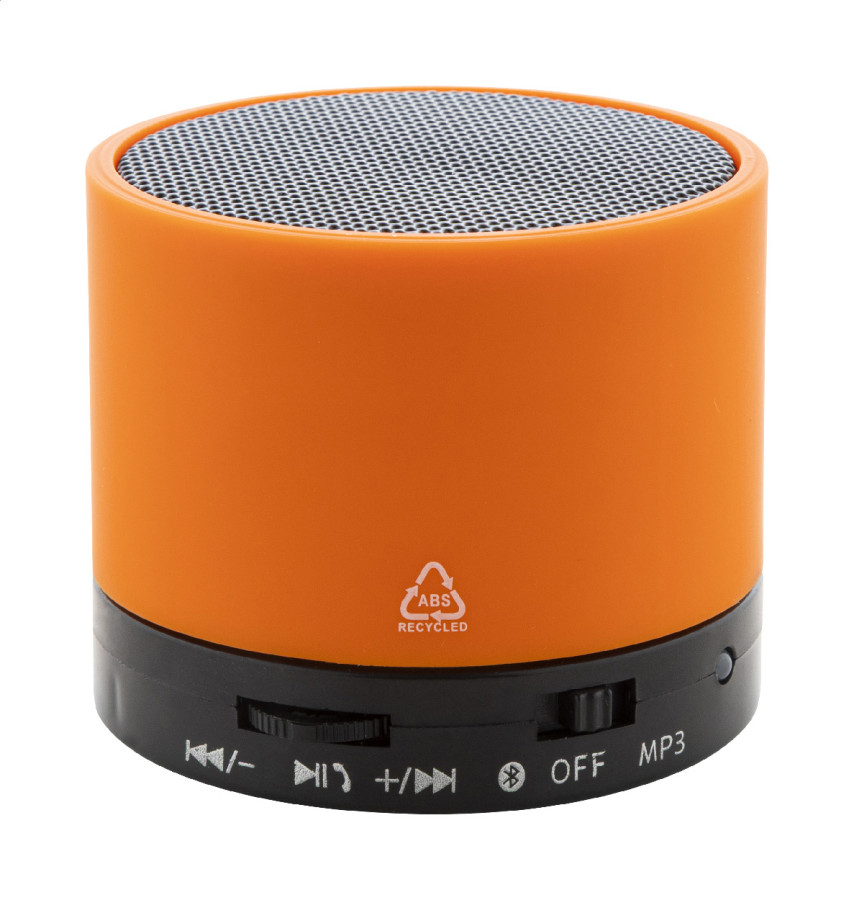 Bezdrôtový reproduktor z recyklovaného ABS v pogumovanom puzdre s kovovou sieťovinou a dobíjacou batériou (300 mAh). S funkciou handsfree hovorov a prehrávanie MP3 z micro SD karty. Vrátane nabíjacieho kábla USB.