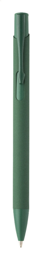 Guľôčkové pero z recyklovaného hliníka s pogumovaným telom a farebnými lesklými kovovými dielmi. So špeciálnym povrchom na zrkadlové gravírovanie, ktoré zodpovedá kovovým častiam. S modrou náplňou.