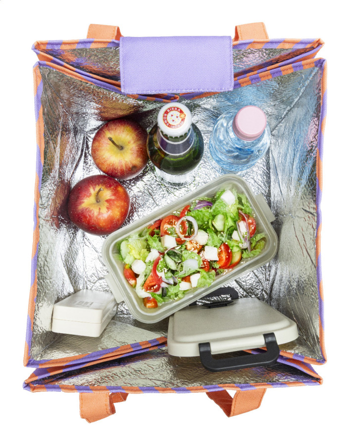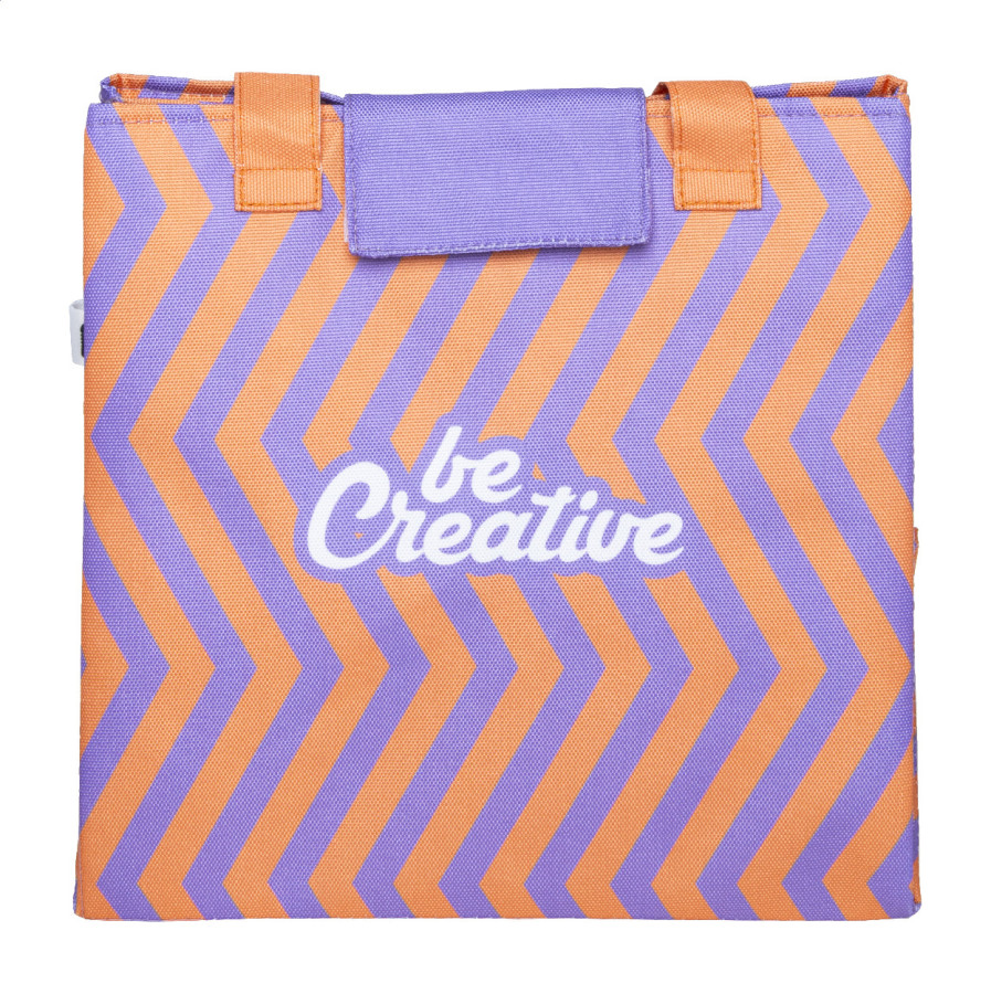 Chladiaca taška na zákazku z 600D RPET polyesteru s hliníkovým polstrovaním, zapínaním na suchý zips a dlhými rukoväťami. Slúži aj ako košík a je možné ju rozložiť na použitie ako piknikovú deku. S celoplošnou sublimačnou potlačou a výrazným štítkom RPET. Cena nezahŕňa tlačovú prípravu. Min. mn.: 25 ks.