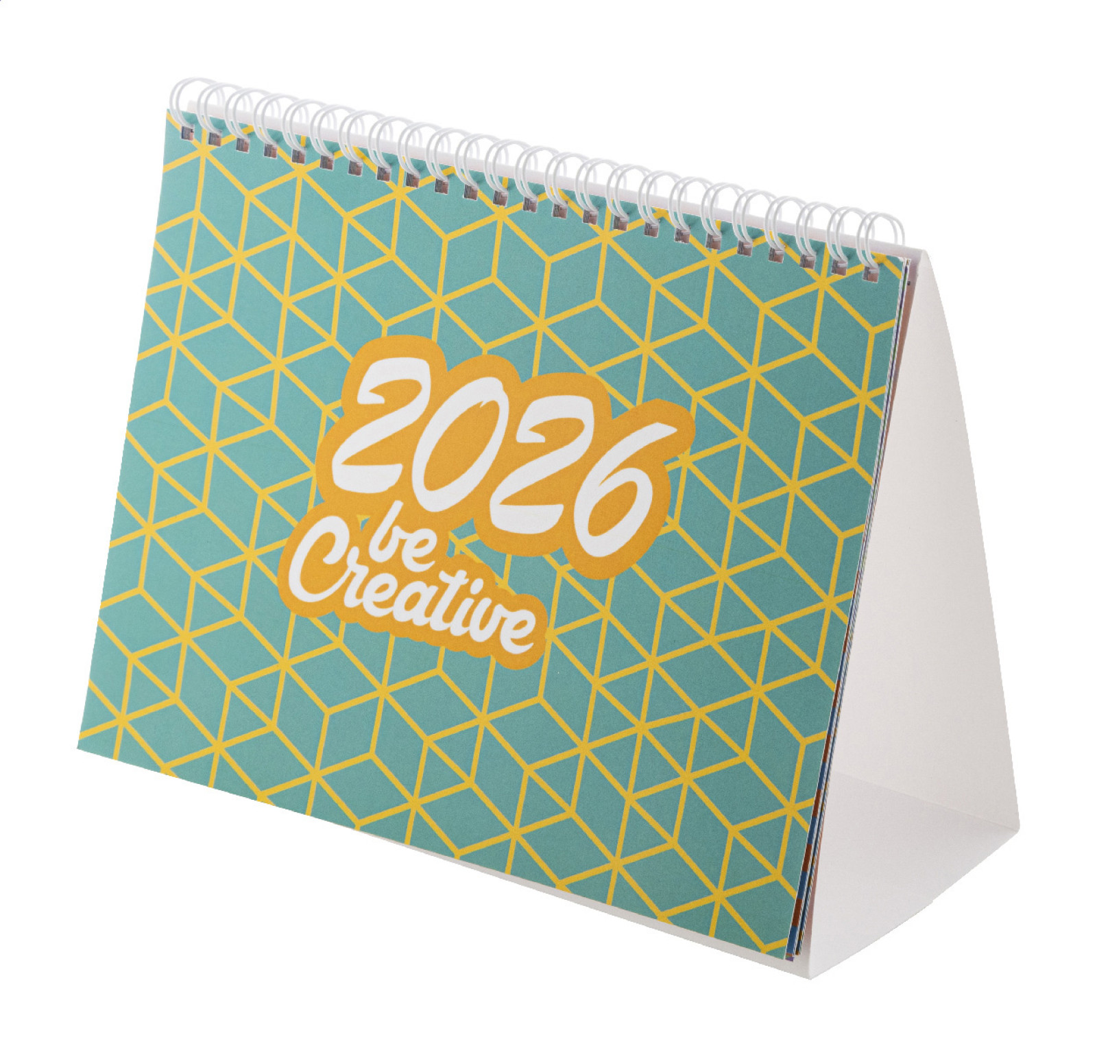 Špirálovo viazaný stolný kalendár s farebnou grafikou na zákazku. So 6 obojstrannými mesačnými listami a titulnou stranou. Cena zahŕňa digitálnu tlač na všetkých stránkach, nezahŕňa tlačovú prípravu. Min. mn.: 100 ks.