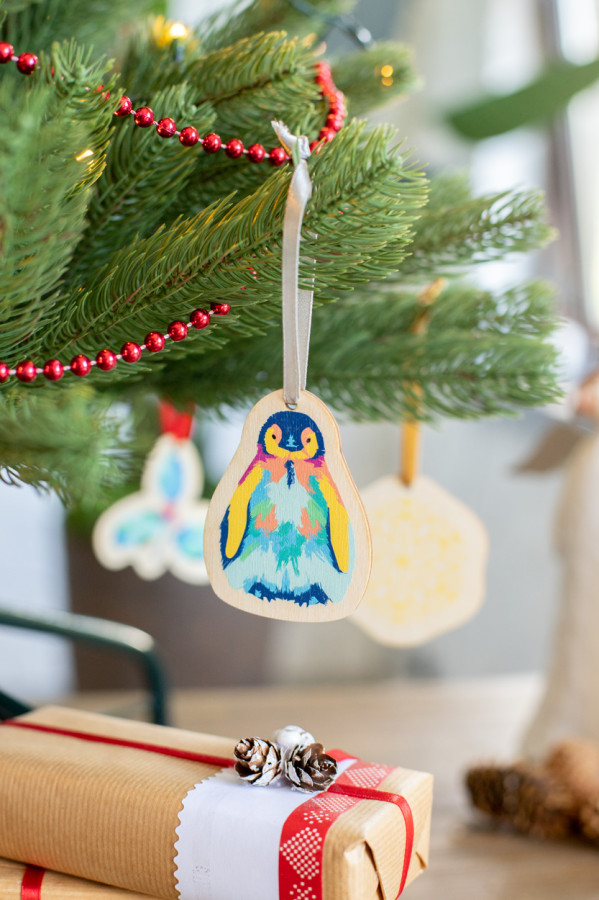 Vlastná ozdoba na vianočný stromček vyrobená z brezovej preglejky s vlastným tvarom a farebnou grafikou. Maximálna veľkosť: 80x80 mm. Cena zahŕňa jednostrannú potlač UV LED, vrátane prípravy tlače. Dodáva sa samostatne so stuhou. Min. množstvo: 100 ks.