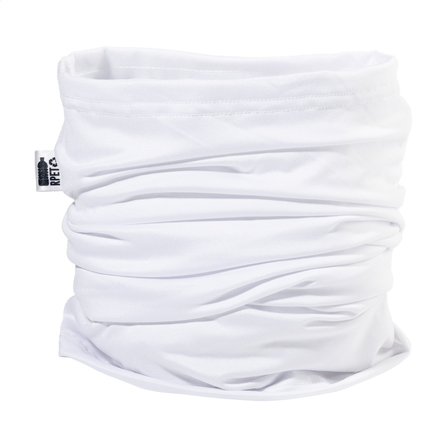 Na zákazku vyrobená viacúčelová šatka z RPET s celoplošnou sublimačnou potlačou. 92% RPET polyester a 8% elastan (185 g/m²), s výraznou RPET etiketou. Cena nezahŕňa tlačovú prípravu. Min. mn.: 50 ks.