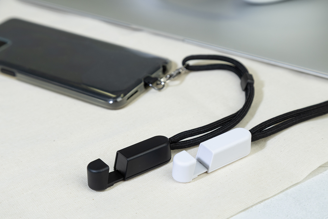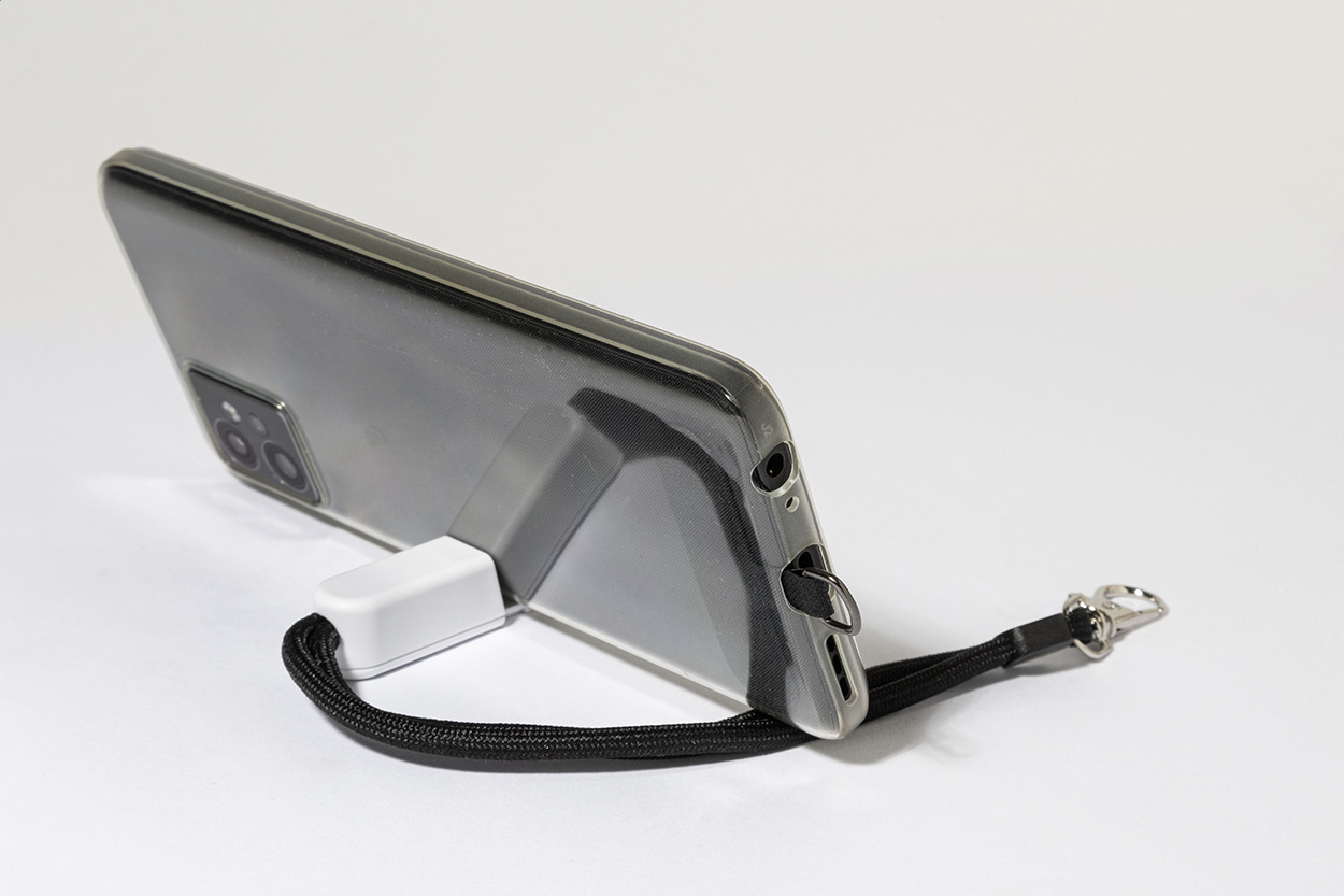 Držiak na mobil z RPET s vložkou pre telefón a stojanom na mobilný telefón z recyklovaného ABS.