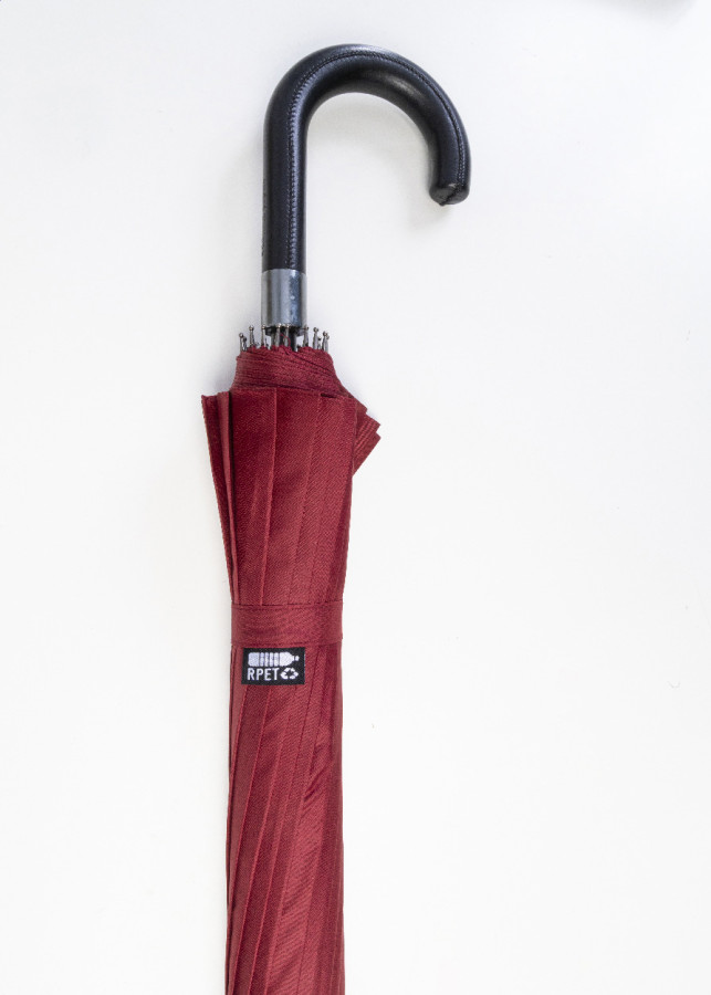 Veľký automatický dáždnik odolný proti vetru so 16 panelmi, rukoväťou z PU kože, kovovým rámom a rebrami zo sklených vlákien. 190T RPET ponge. S výrazným štítkom RPET. V značkovom prenosnom púzdre. Výrobok značky André Philippe.