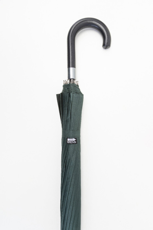 Veľký automatický dáždnik odolný proti vetru so 16 panelmi, rukoväťou z PU kože, kovovým rámom a rebrami zo sklených vlákien. 190T RPET ponge. S výrazným štítkom RPET. V značkovom prenosnom púzdre. Výrobok značky André Philippe.
