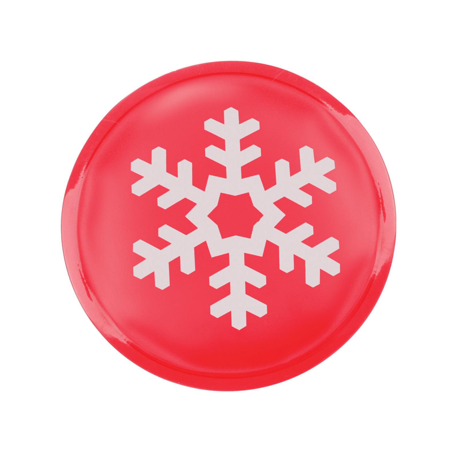 Opakovane použiteľný zahrievací vankúšik okrúhleho tvaru so snehovými vločkami.