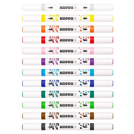 Dekoračný popisovač, sada, akrylový, 1-2 mm, obojstranný, KORES " K-Kreative", 12 rôznych