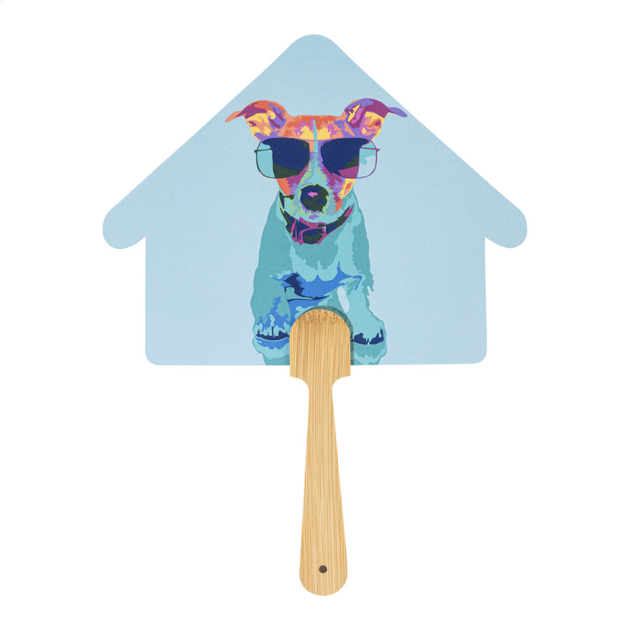 Ručný vejár s bambusovou rukoväťou a polaminovaným papierom na zákazku. Digitálna potlač s vašou grafikou na oboch stranách. Cena nezahŕňa tlačovú prípravu. Min. mn.: 100 ks.