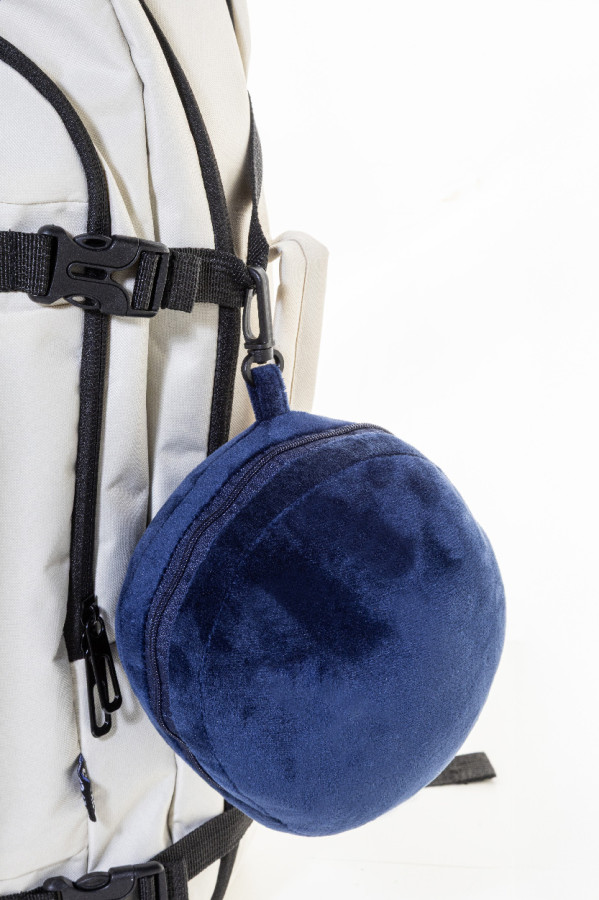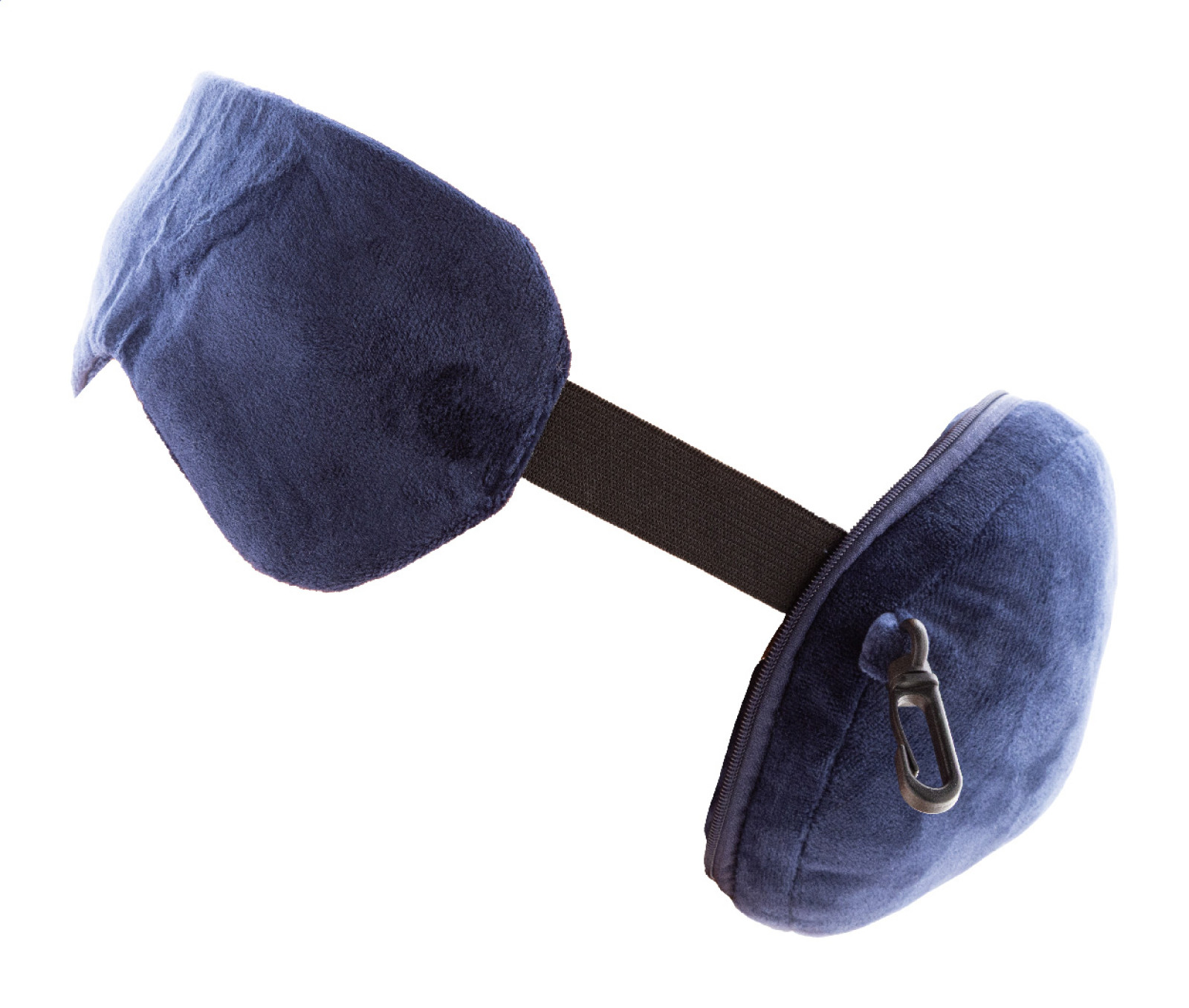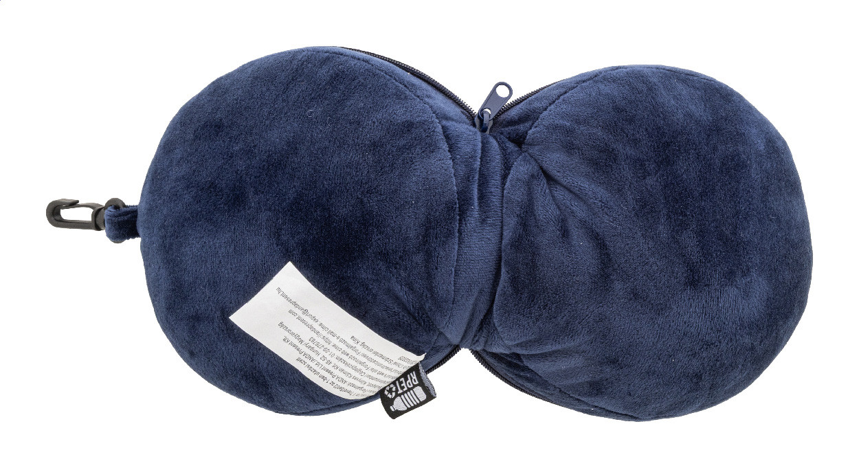 Cestovný vankúš z RPET polyesteru s integrovanou očnou maskou a elastickými popruhmi. Zapína sa do kompaktného guľovitého tvaru pre ľahké skladovanie a obsahuje karabínu z PP pre pripevnenie k batožine. S výraznou etiketou z RPET.