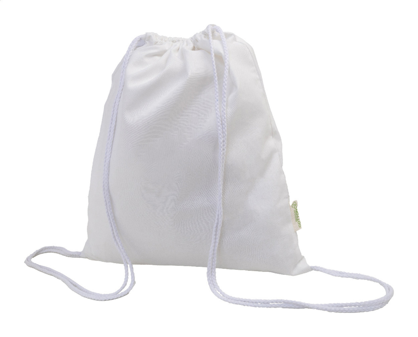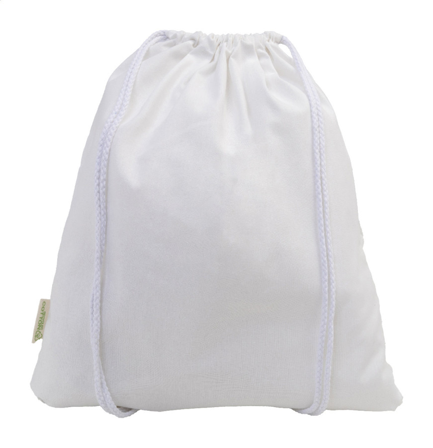 Vak so sťahovacou šnúrkou zo 70% recyklovanej bavlny a 30% polyesteru RPET, 140 g/m². S výrazným štítkom z recyklovanej bavlny.