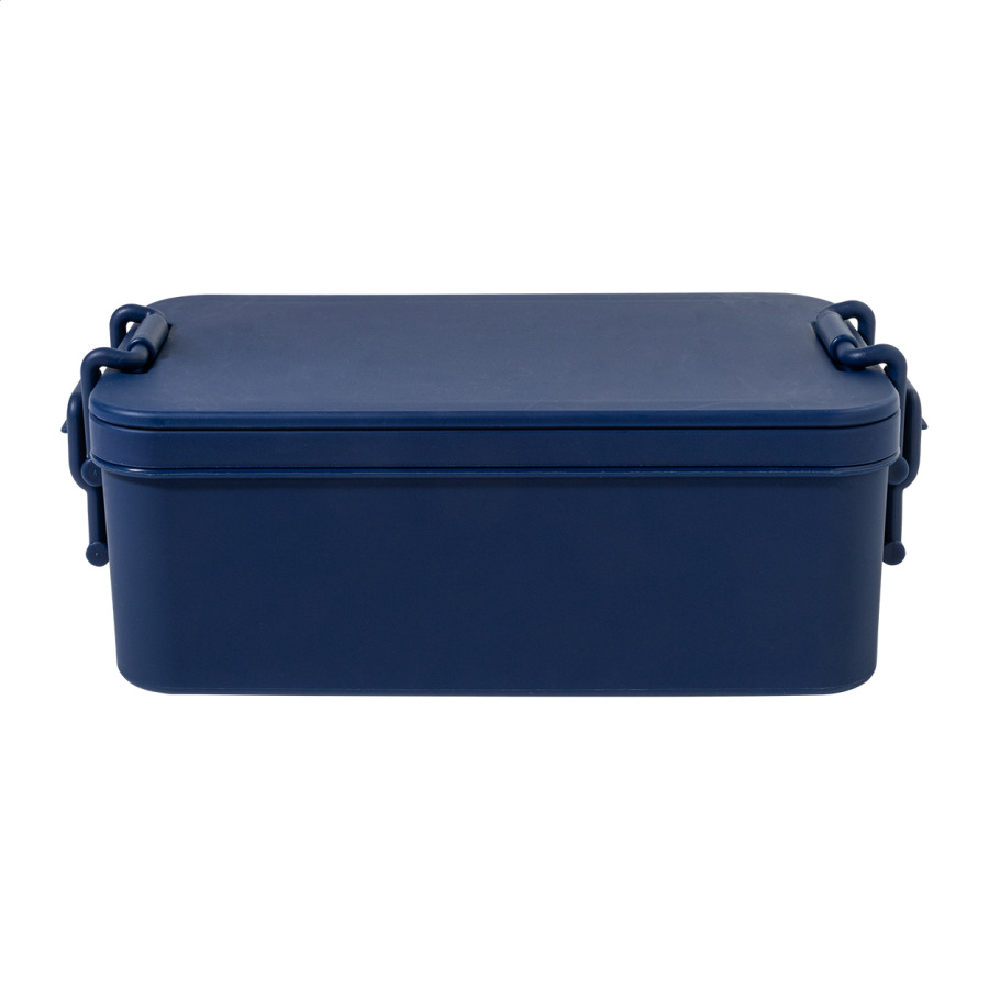 Box na jedlo z PP plastu so sadou príborov (vidlička, lyžica a nôž), zapínaním na pracku a 2 priehradkami (1000 ml a 800 ml). Stohovateľný design pre kompaktné skladovanie.