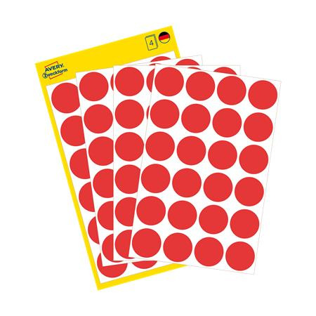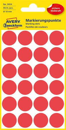 Etikety, okrúhle, priemer: 18 mm, AVERY ZWECKFORM, červené, 96 etikiet/bal
