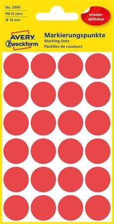 Etikety, okrúhle, priemer: 18 mm, odstrániteľné, AVERY ZWECKFORM, červené, 96 etikiet/bal