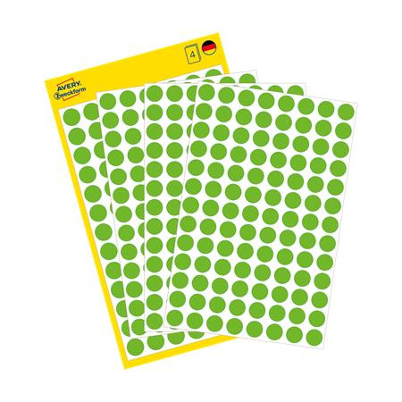 Etikety, okrúhle, priemer: 8 mm, odstrániteľné, AVERY ZWECKFORM, zelené, 416 etikiet/bal