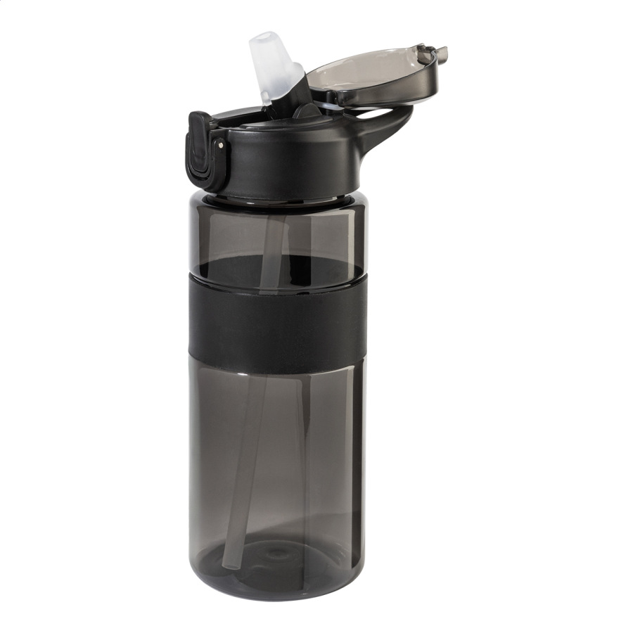 Športová fľaša z RPET so silikónovým úchopom, automaticky otvárateľným odklápacím viečkom s integrovanou slamkou, silikónovým náustkom a bezpečnostným zámkom. 700 ml. Bez BPA. Nevhodné pre sýtené nápoje.