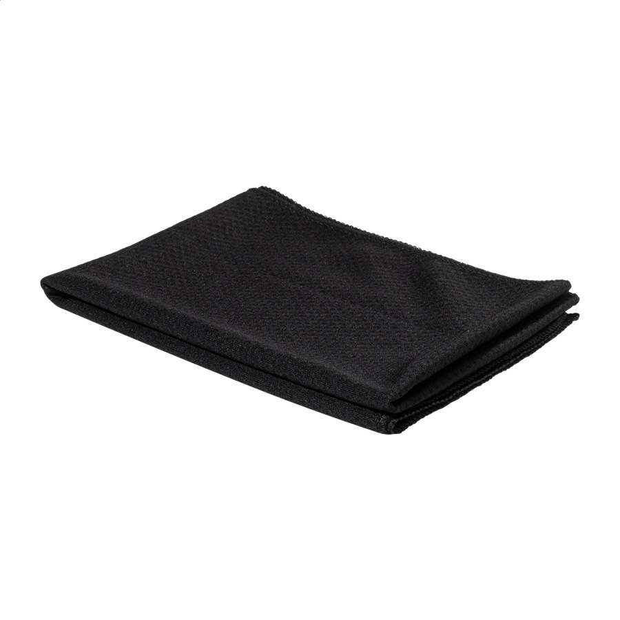 Chladiaci športový uterák z RPET polyesteru v RPET športovej fľaši s PP viečkom typu flip-top, integrovanou slamkou a prenosným popruhom. Objem 800 ml. Neobsahuje BPA. Nie je vhodná pre sýtené nápoje. Veľkosť uteráka: 30 × 80 cm.