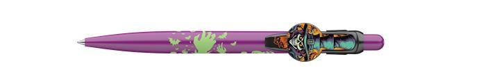 Guľôčkové pero, 0,8 mm, stláčací mechanizmus, fialové vzorované telo, ICO "Halloween", mod