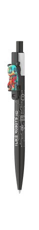 Guľôčkové pero, 0,8 mm, stláčací mechanizmus, ICO "Robot", čierne