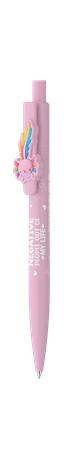 Guľôčkové pero, 0,8 mm, stláčací mechanizmus, ružové telo pera, ICO "Axolotl", modré