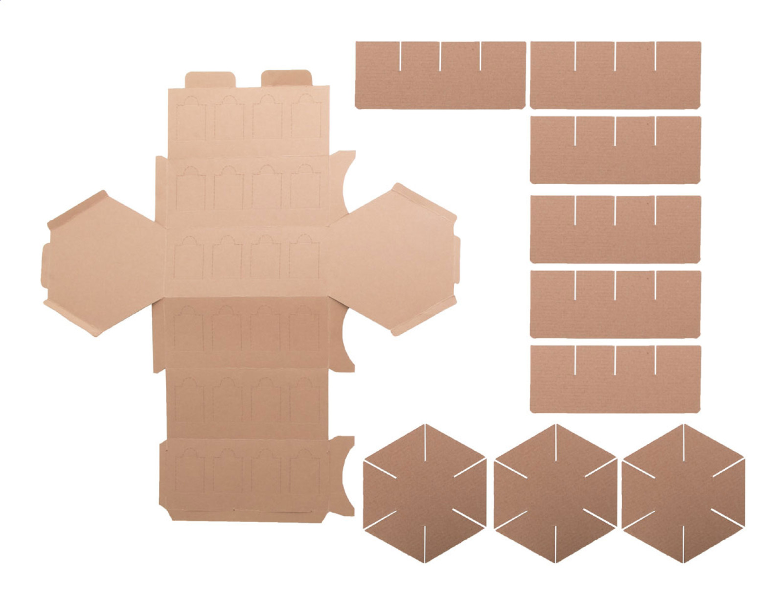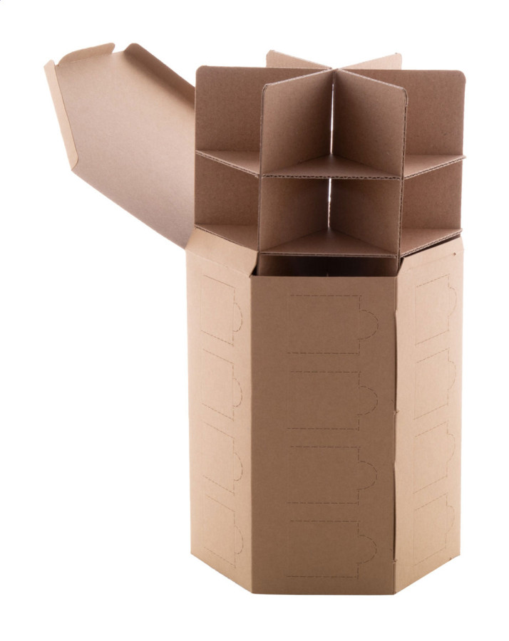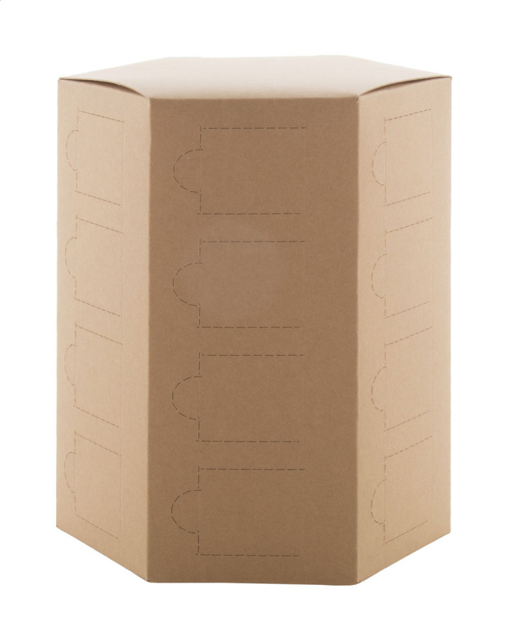 Na zákazku vyrobený plnofarebne tlačený šesťhranný adventný kalendár z kraftového papiera s 24 priehradkami. Dodávané rozložené, bez sladkostí. Min. mn. 50 ks.