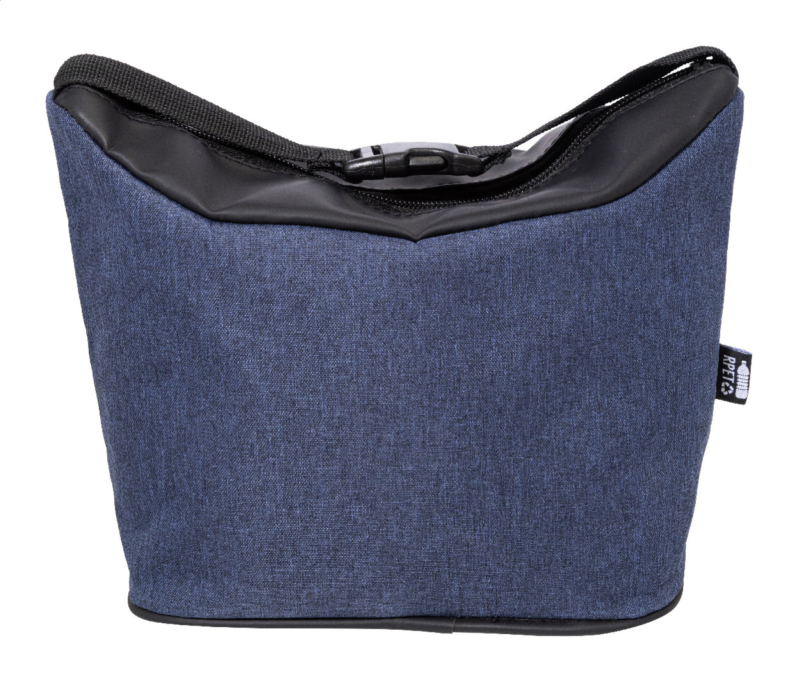 Chladiaca taška na zips z polyesteru 600D RPET s mäkkými detailmi z recyklovanej PU kože, hliníkovým polstrovaním a popruhom s prackou. S výrazným štítkom RPET.
