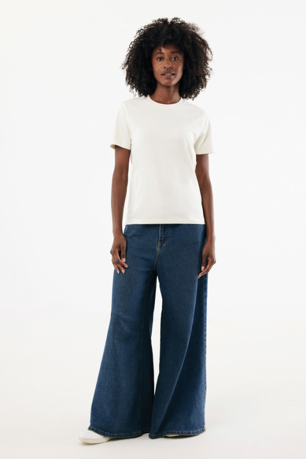 Unisex tričko moderného strihu vyrobené zo 100 % bavlny, z toho 50 % recyklovanej a 50 % organickej, s gramážou 220 g/m². Tričko má klasický okrúhly výstrih s rebrovaním 1x1. Použitie pravých recyklovaných a organických materiálov a tvrdenia o environmentálnom vplyve sú garantované technológiou AWARE™ s fyzickým identifikátorom a technológiou blockchain. Naskenovaním QR kódu získate prístup k digitálnemu pasu produktu. 2 % z výťažku z každého predaného kusu sú venované organizácii Water.org. Produkt je certifikovaný podľa OEKO-TEX® STANDARD 100 Centexbel. Vzhľadom na charakter recyklovaných priadzí sa môžu vyskytnúť drobné nečistoty a farebné odchýlky.