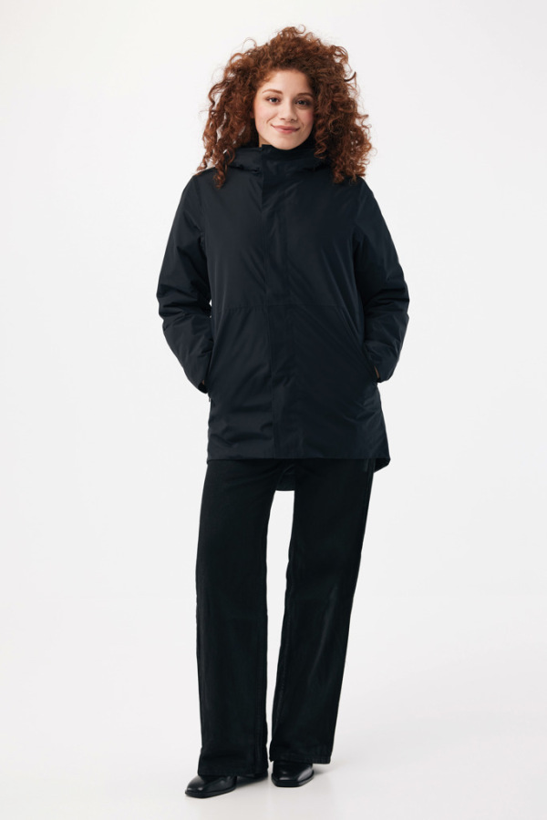 Unisex zateplená nepremokavá parka, vyrobená zo 100 % recykl. polyesteru. Bunda má vodný stĺpec 4 000 mm, je priedušná a odolná voči vetru. Má všetky prvky klasickej parky: predĺžený zadný diel, zadný rozparok, obojsm. reverzný zips vpredu prekrytý légou so štyrmi skryt. cvokmi, čisté rukávové manžety s vnút. polovičnou manžetou, kapucňu so sťahovacími stopermi pri vnút. časti goliera a horizont. ozdobné švy. Zateplená je výplňou zo 100 % recykl. polyest. a podšitá jemnou taftovou podšívkou. Vo vnútri sa nachádza skrytý zips v dolnom leme a na ľavej strane hrude pre jednod. doplnenie dekorácie. Celý odev je prešitý niťou z recyklovaného polyesteru. Na zadnej strane pri krku je odtrhávacia veľkostná etiketa s visačkou IQONIQ Craft a štítkom s pokynmi na údržbu na ľavom vnútor. bočnom šve.Použitie pravého recykl. mat. a envi. tvrdenia sú zaručené vďaka technológii AWARE™ – inovat. fyzickému sled. prvku a blockchain techn. Nasken. QR kódu získate prístup k digitálnemu pasu výrobku.