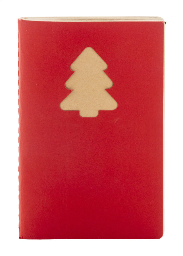 Blok A6 z recyklovaného kraftového papiera s vyrezávaným vianočným stromčekom a 60 prázdnymi listami z recyklovaného kraftového papiera.