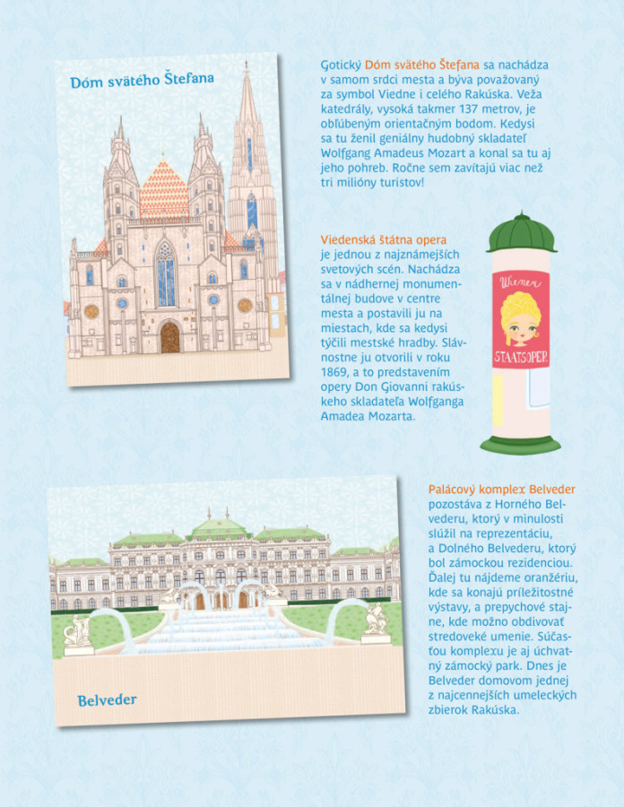 Obľúbená séria minimiki prichádza s ďalšou novinkou v podobe zábavnej samolepkovej knižky, v ktorej budú deti spolu s bábikou Júliou a jej kamarátkami Štefániou a Natáliou objavovať najznámejšie miesta rakúskeho hlavného mesta Viedne, jednej z najkrajších európskych metropol. Známe viedenské scenérie môžu dopĺňať množstvom krásnych samolepiek podľa vlastnej fantázie a v knižke nájdu aj plno zaujímavých informácií či už o tamojších pamiatkach alebo aj o obyvateľoch tejto krajiny.