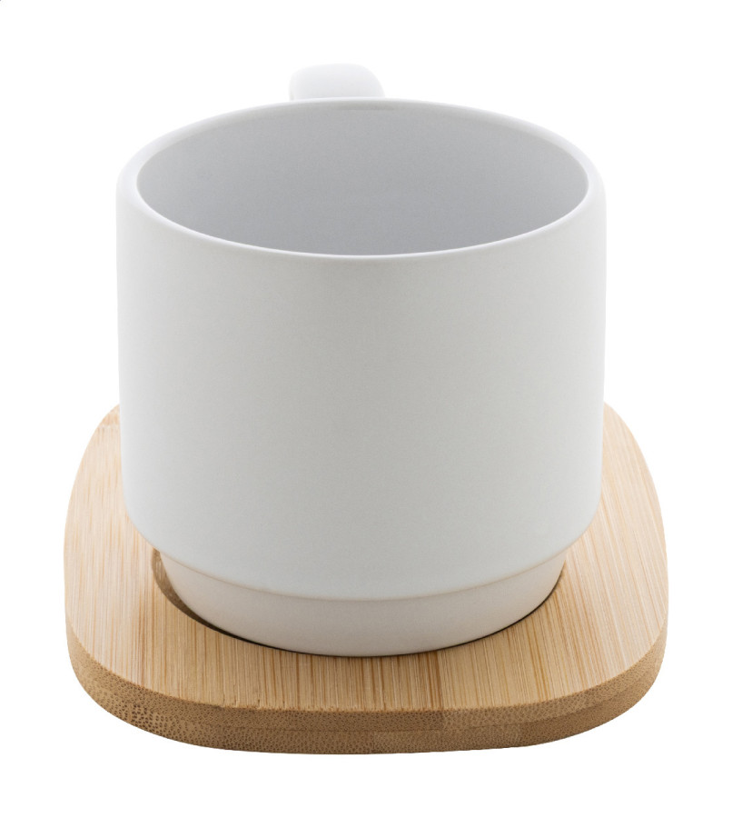 Vysoko kvalitný keramický hrnček s matným vonkajším a lesklým vnútorným povrchom. Vrátane bambusového servírovacieho podnosu. 220 ml. V krabičke z kraftového papiera.