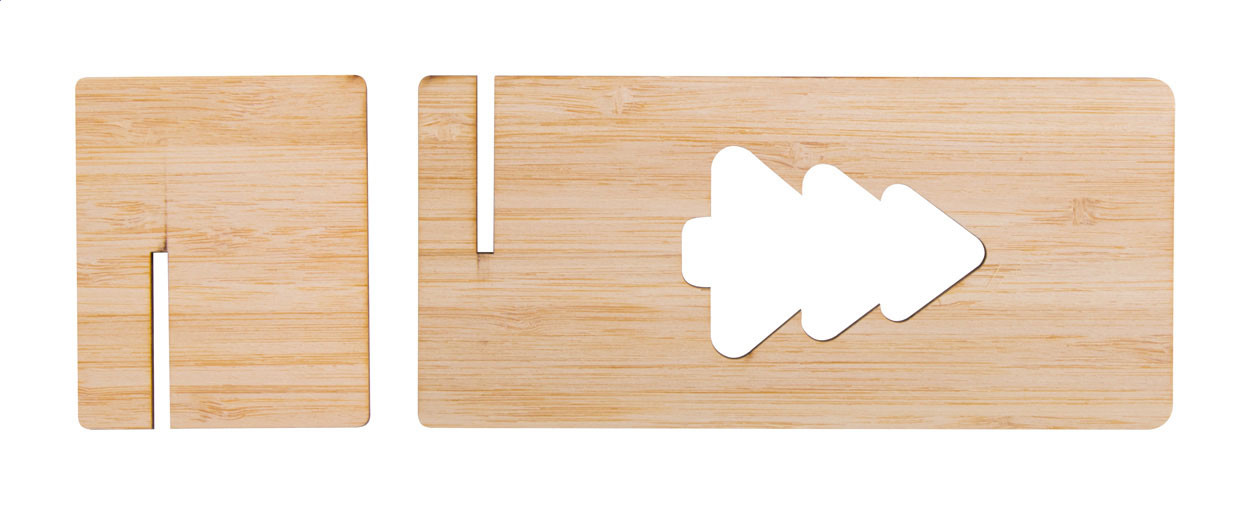 Stojan na mobilný telefón z bambusovej preglejky s vyrezávaným vianočným motívom. Dodáva sa v rozloženom stave.