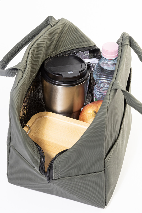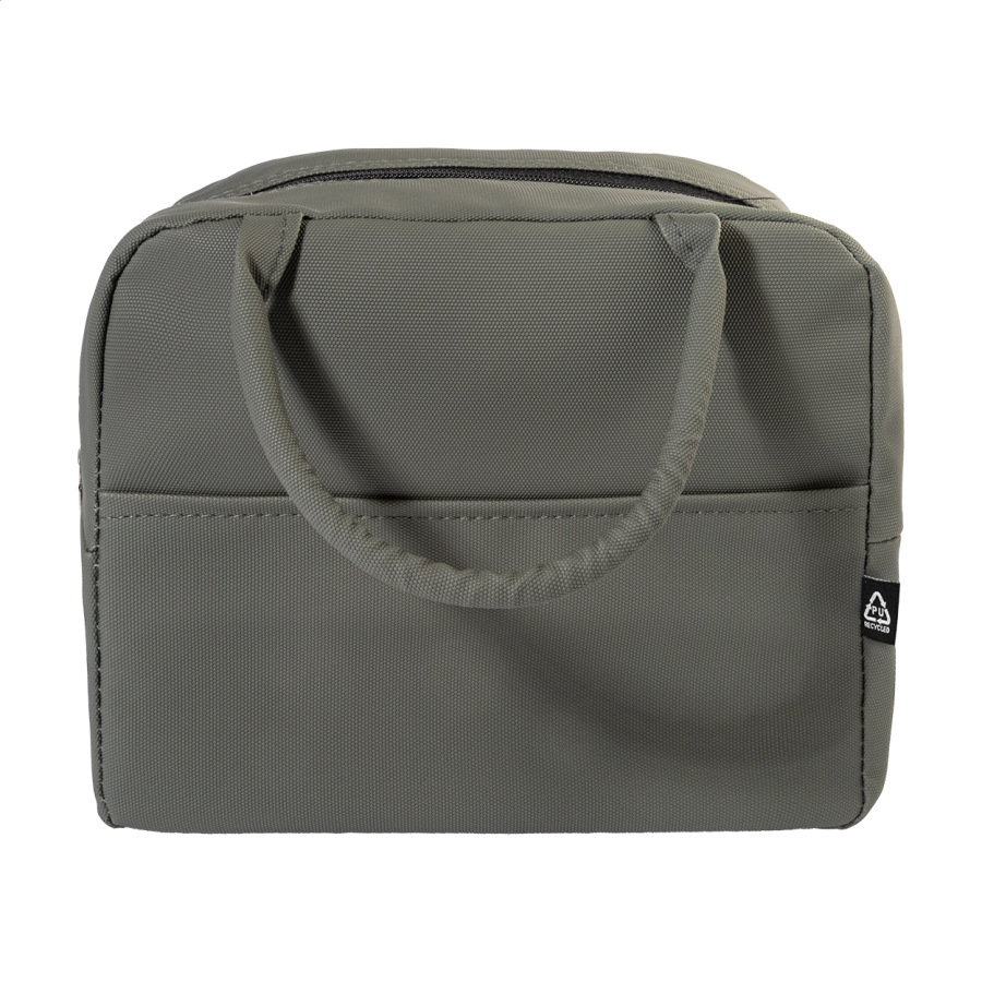 Chladiaca taška na zips z mäkkej recyklovanej PU kože s predným vreckom a hliníkovým polstrovaním. S charakteristickým štítkom z recyklovanej PU kože.