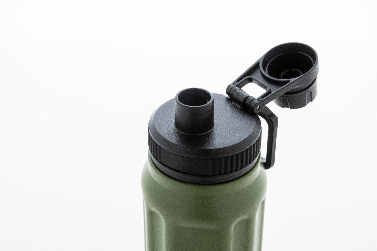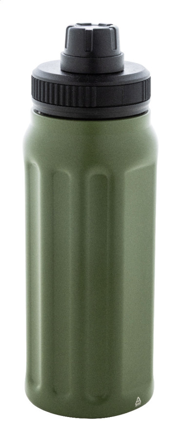Dvojstenná termoska z recyklovanej nerezovej ocele s vertikálnymi drážkami. S viečkom z polypropylénu a s integrovaným držadlom. 540 ml.