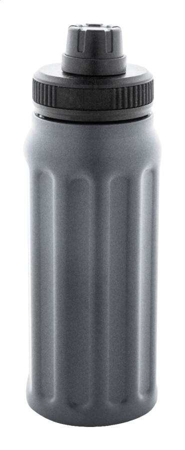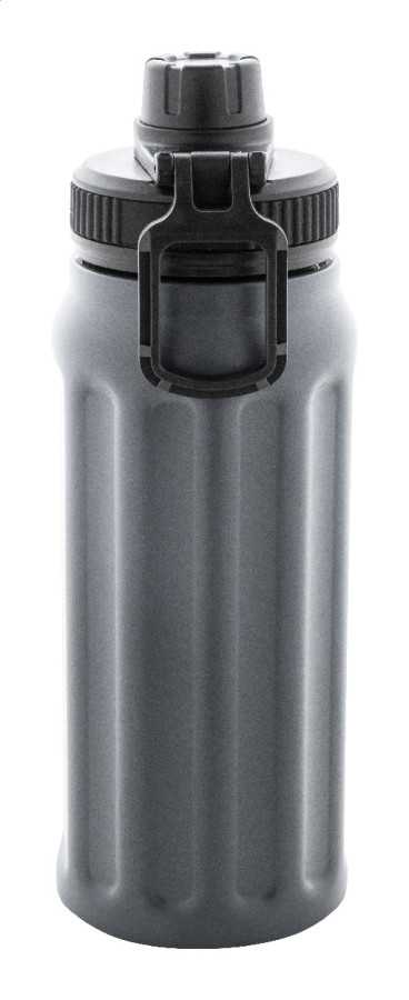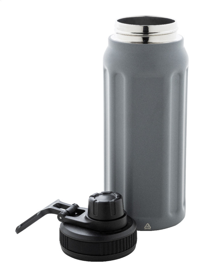 Dvojstenná termoska z recyklovanej nerezovej ocele s vertikálnymi drážkami. S viečkom z polypropylénu a s integrovaným držadlom. 540 ml.