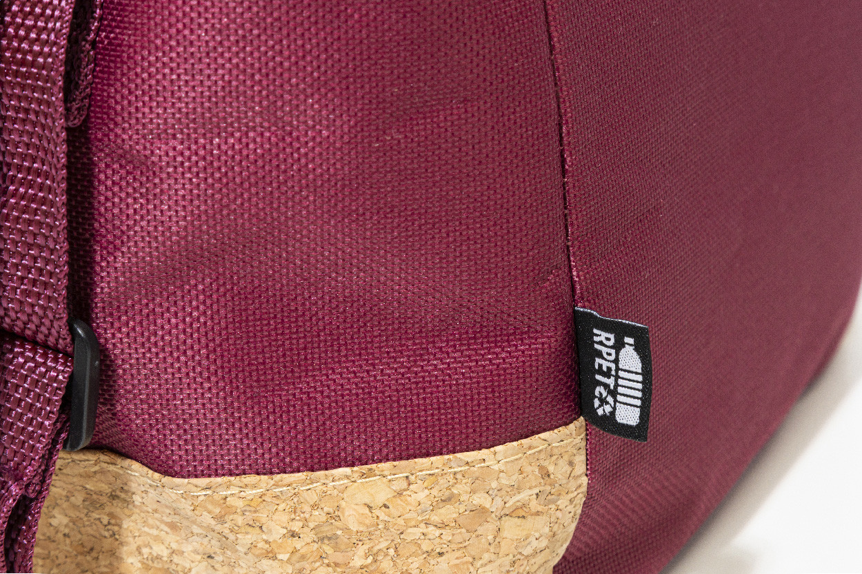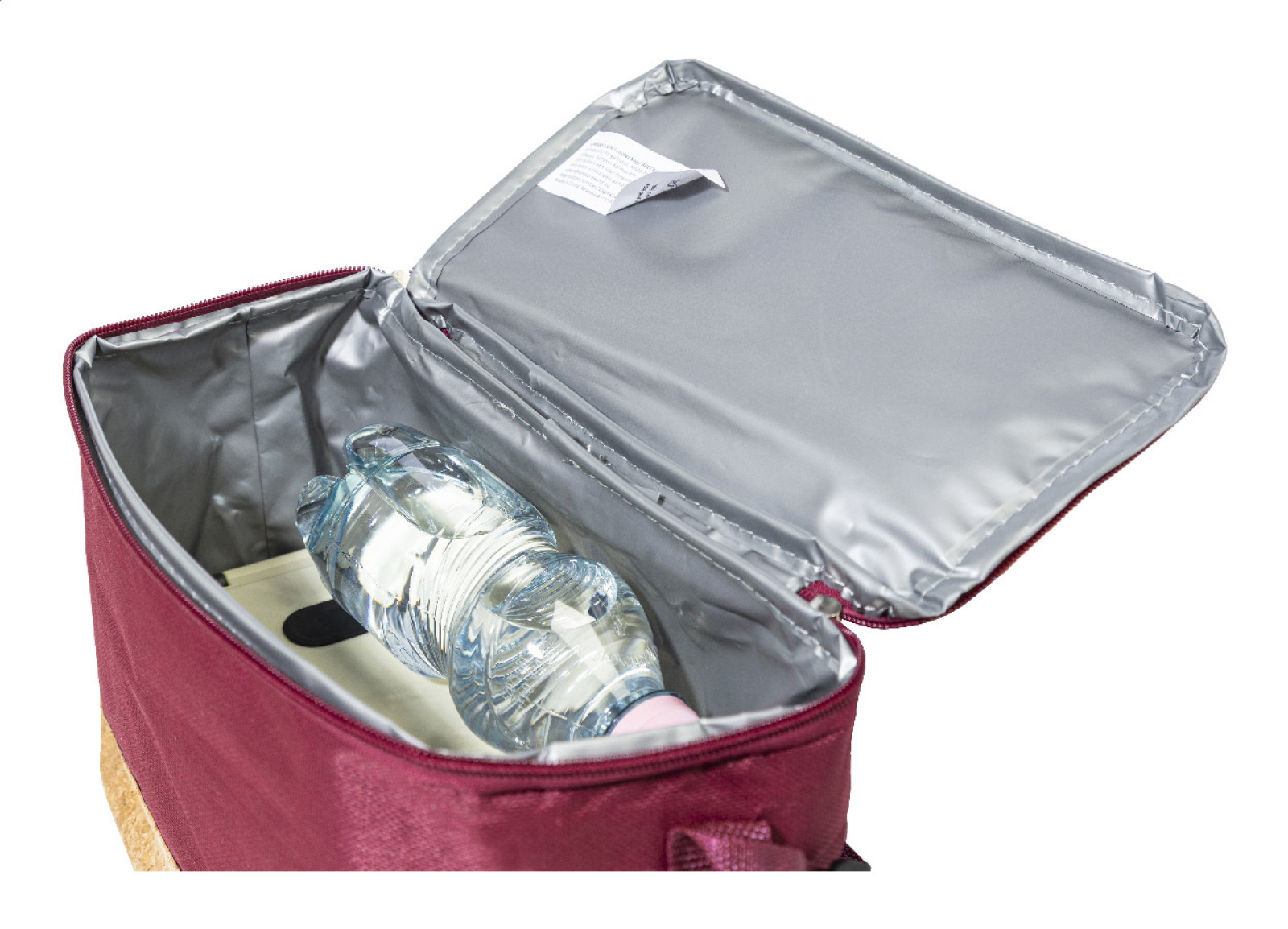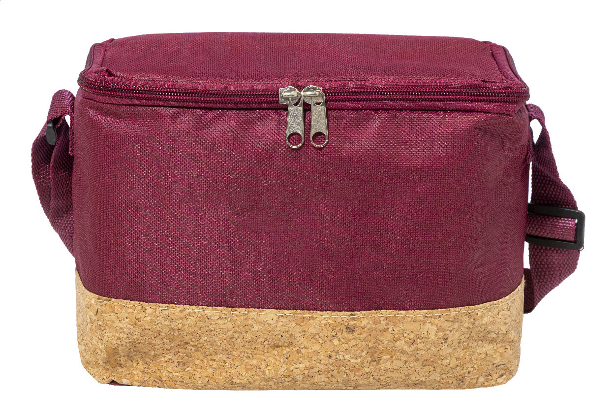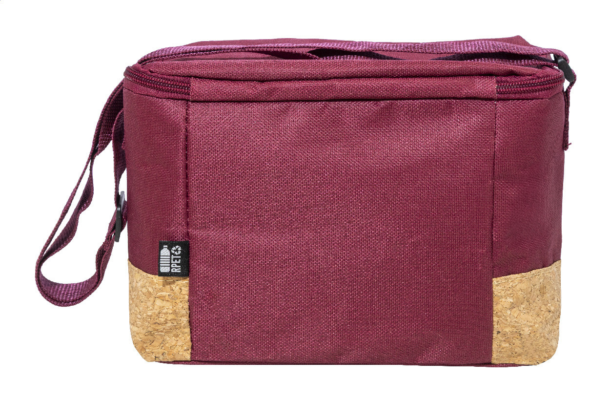 Chladiaca taška na zips z 600D RPET polyesteru s prírodnou korkovou základňou, PEVA polstrovaním a nastaviteľným ramenným popruhom. S výrazným štítkom RPET.