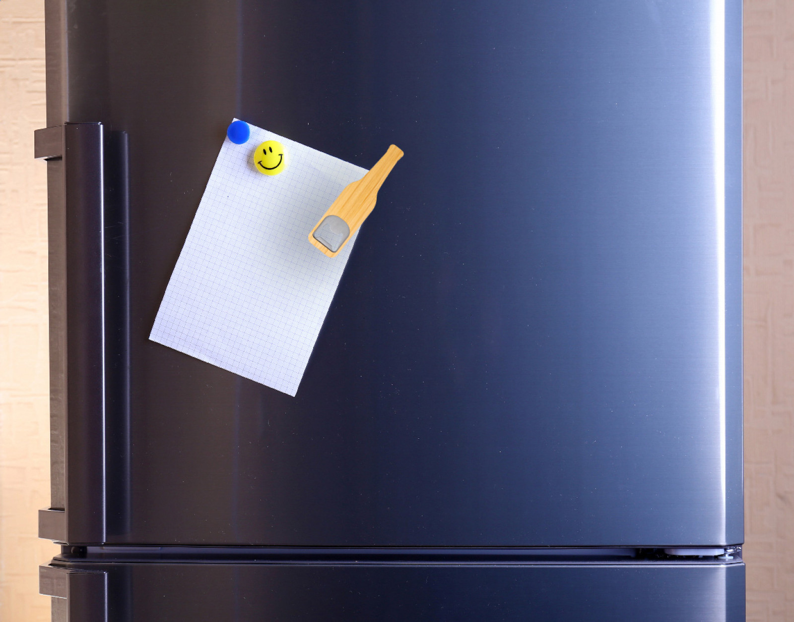Otvárač na fľaše z nerezovej ocele v tvare fľaše s bambusovým povrchom.