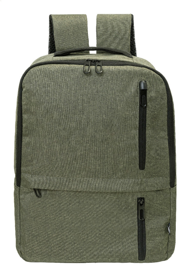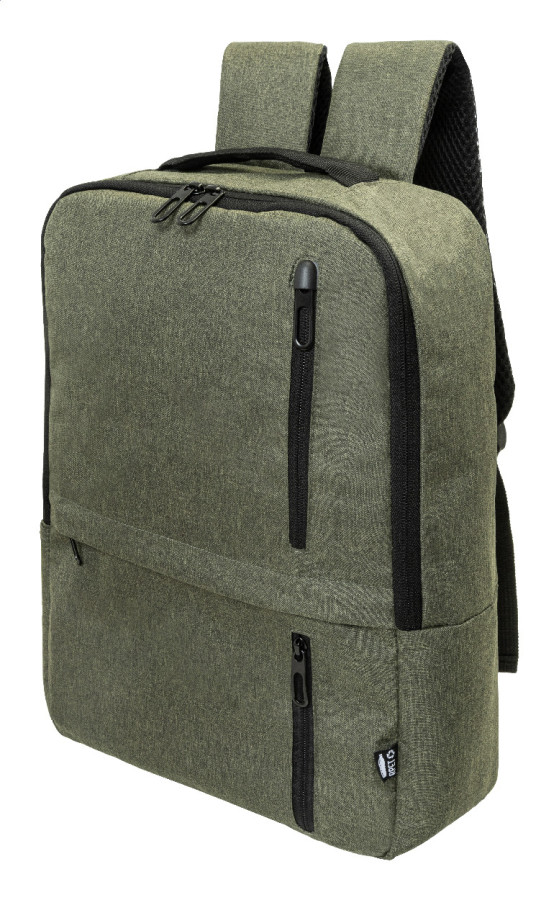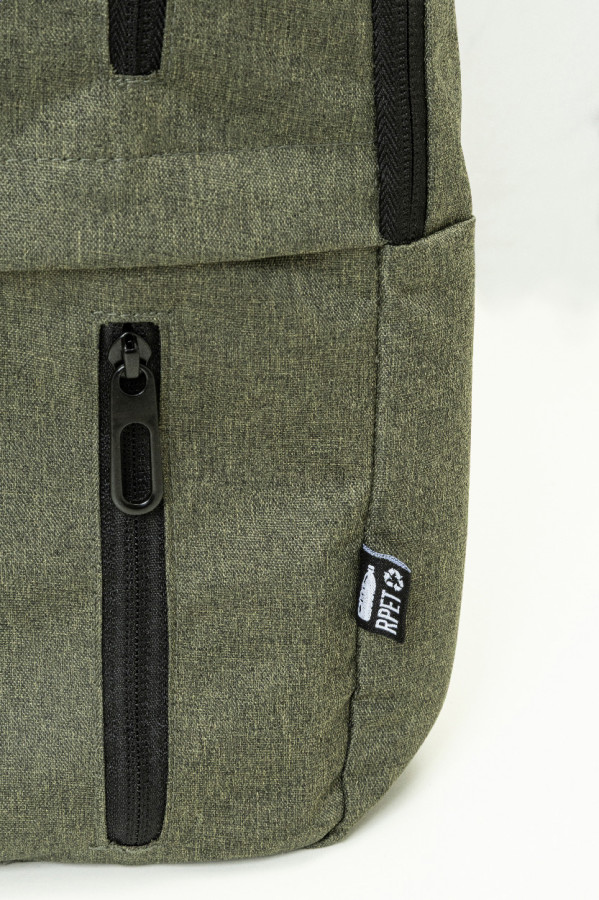 RPET batoh s hlavnou priehradkou na zips a 3 prednými vreckami na zips. S polstrovanými priehradkami na tablet (10") a notebook (15"), polstrovaným chrbtom a ramennými popruhmi. 600D RPET polyester s výrazným štítkom RPET.