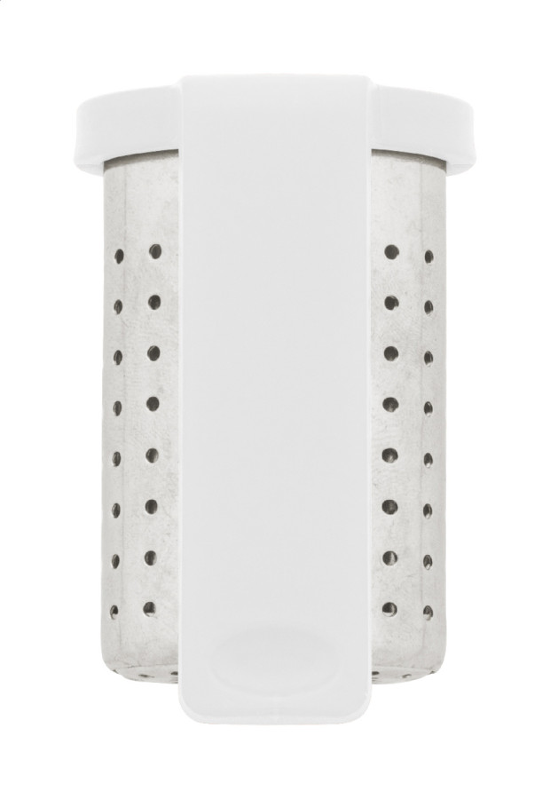 Nerezové sitko na čaj s praktickým klipom z recyklovaného ABS plastu. Navrhnutý pre ľahké pripevnenie k okraju hrnčeka.